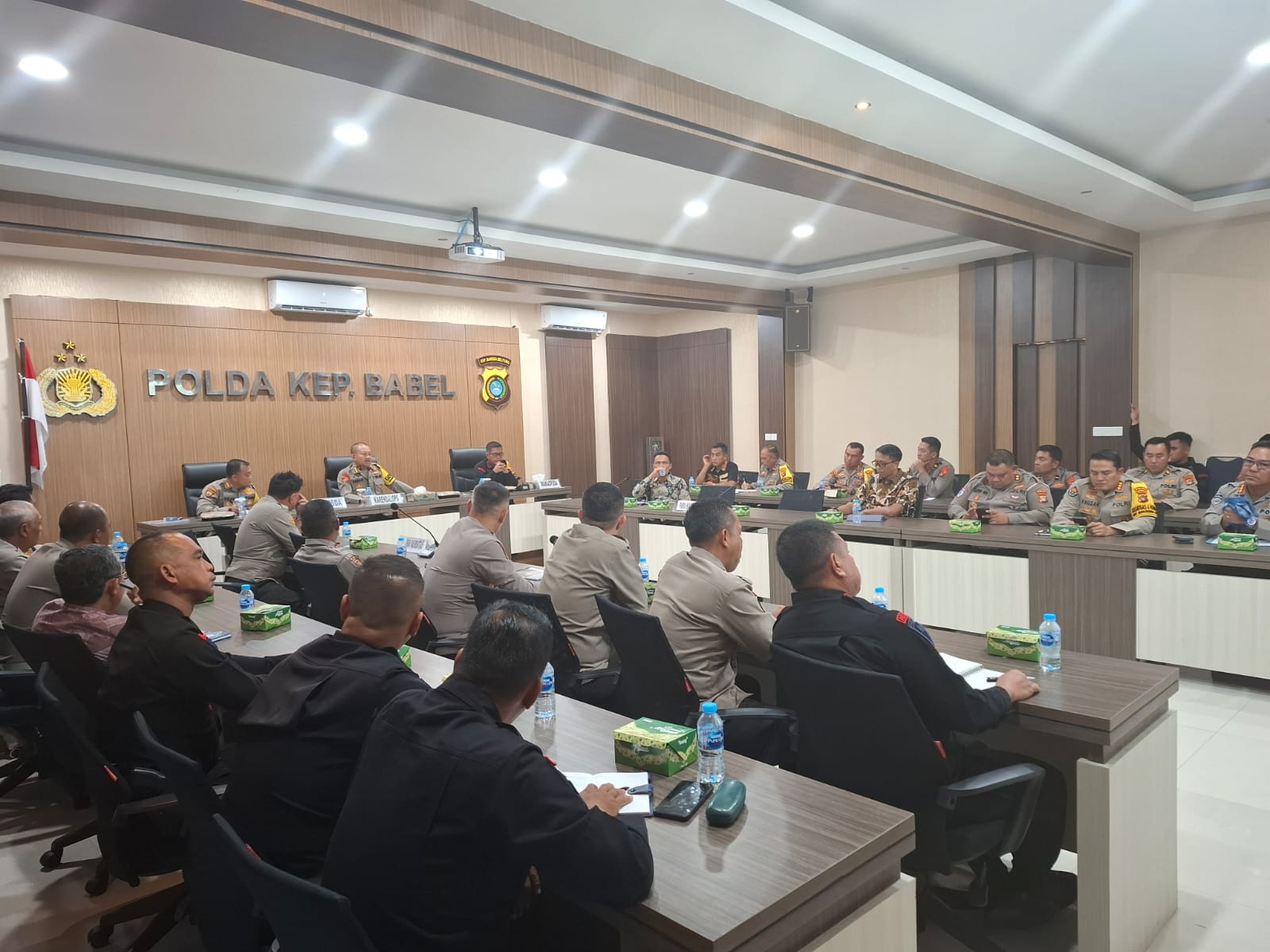Polda Bangka Belitung menggelar rapat kesiapan rencana pengamanan Pilkada Serentak 2024 tahapan debat dan penyampaian visi dan Misi Calon Kepala Daerah Provinsi Kepulauan Bangka Belitung.