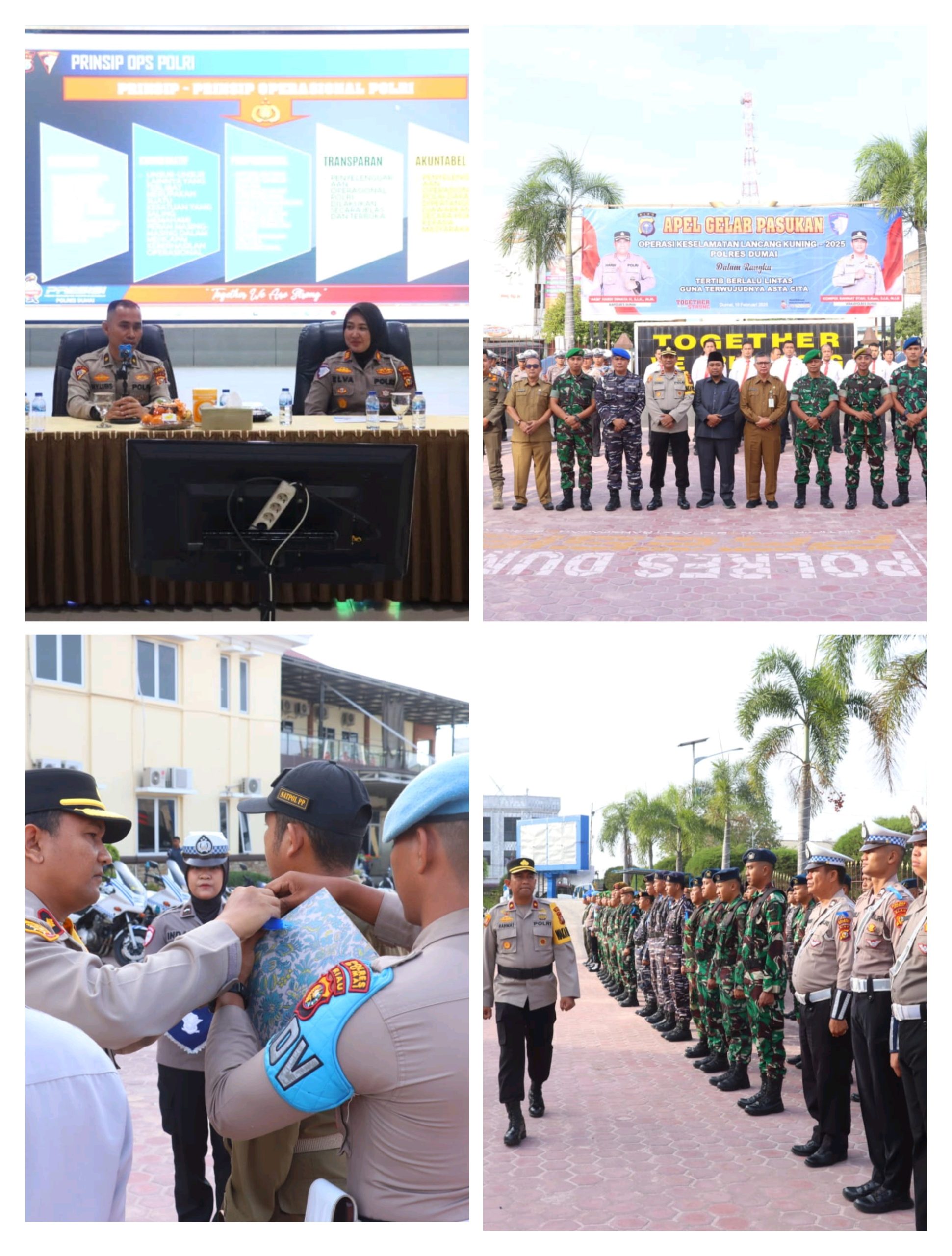 Sebelum apel gelar pasukan, Polres Dumai juga turut menggelar kegiatan Rapat Internal dan Eksternal Operasi Keselamatan Lancang Kuning 2025 di Aula Wicaksana Lahgawa Polres Dumai.