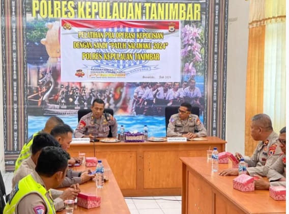 Dalam mempersiapkan pelaksanaan Operasi Patuh Salawaku 2024, Polres Kepulauan Tanimbar menggelar Latihan Pra Operasi (Latpraops) dengan sandi Patuh Salawaku 2024 bertempat di ruang Vidcon Mapolres Kepulauan Tanimbar, Jumat (12/07/24).