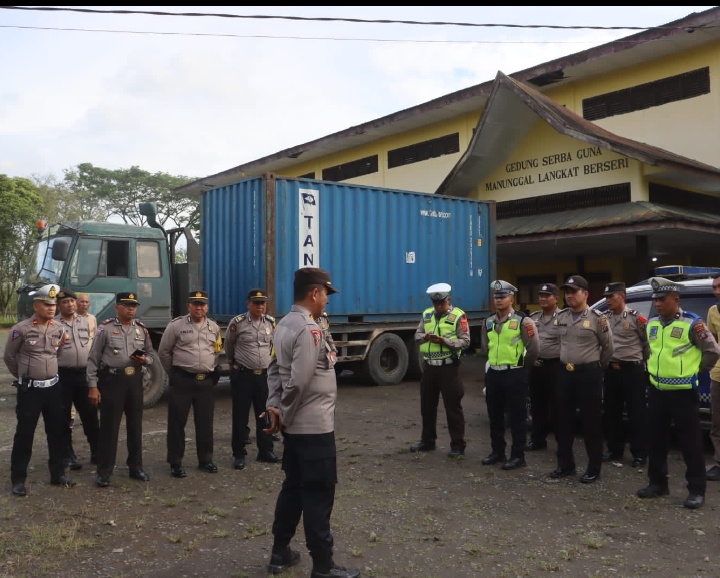 Pelaksanaan Pengamanan Pendistribusian Logistik Pemilu 2024 dipimpin oleh Kabag Ops Polres Langkat selaku Karendal Ops Res Operasi Mantap Brata (OMB) AKP Sahrial Sirait, SH. MH.