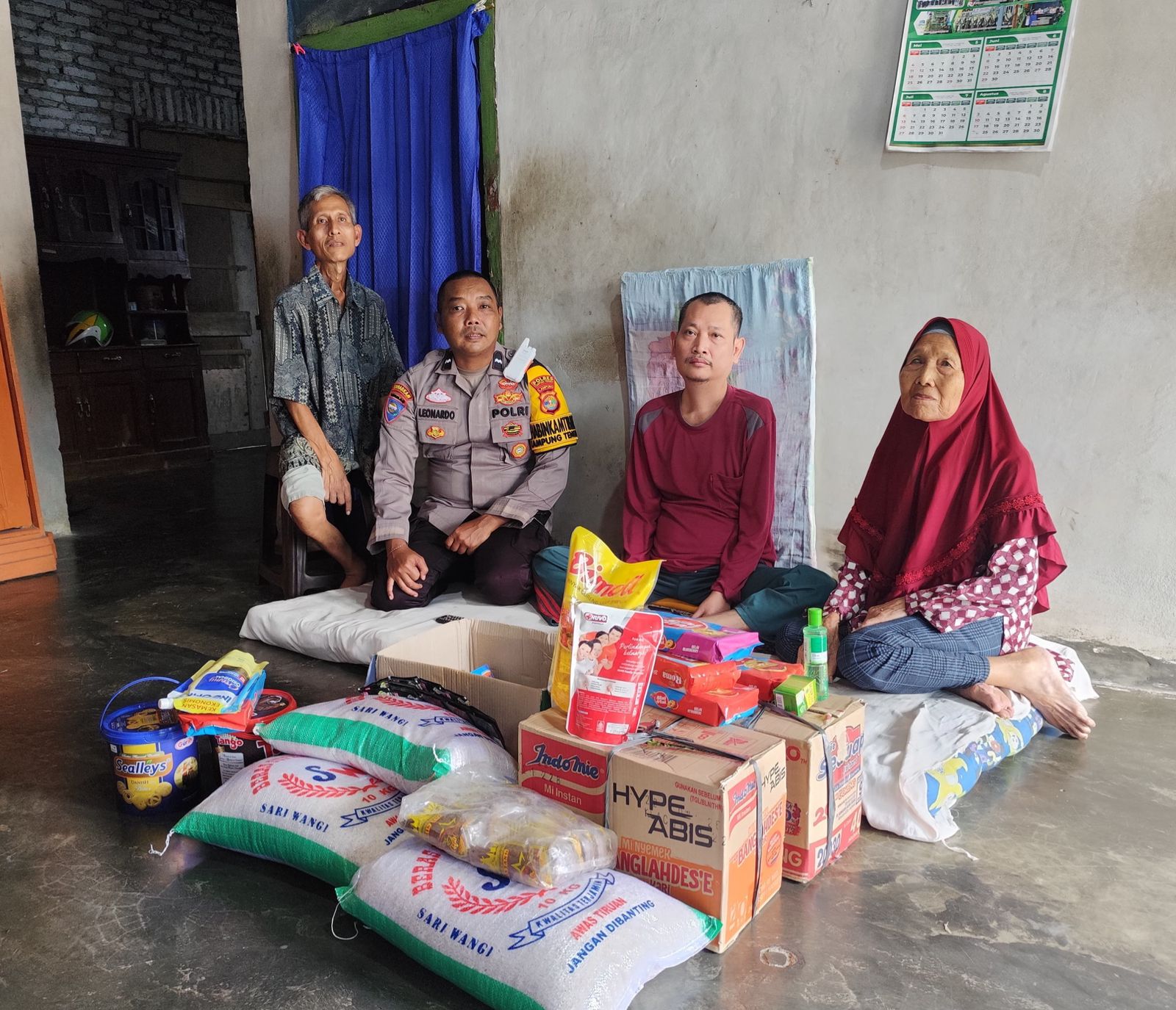 Hari ini, Rabu (9/7/25) dengan mengendarai mobil pribadi miliknya, yang sudah dimodifikasi menjadi mobil ambulance untuk membantu masyarakat sekitar, Aipda Leonardo menyalurkan bantuan sosial berupa beras, paket sembako, dan sejumlah uang tunai kepada nenek Sukinem (80), warga Kampung Cimarias, Kecamatan Bangunrejo, yang saat ini mengalami kondisi memprihatinkan.