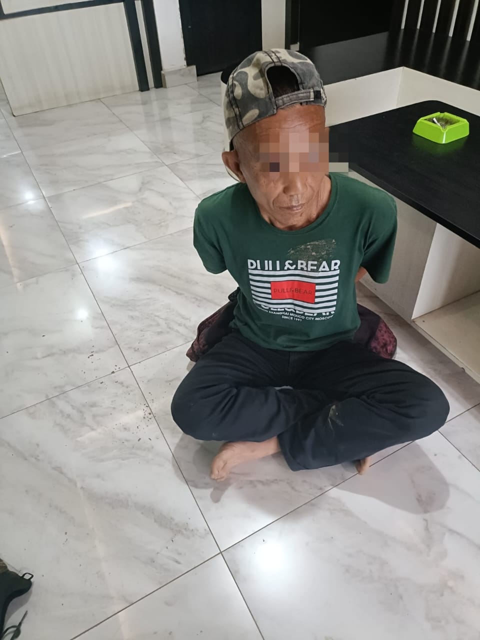 Musi Banyuasin (Sumsel) Kompas86.com__, Faisol (52) satu dari dua terduga pelaku percobaan pencurian disergap oleh warga saat hendak melakukan aksinya, yaitu mengambil 1 unit sepeda motor Honda Beat milik korban Ismail yang sedang diparkir didepan rumahnya di Kompres Kelurahan Keluang Kecamatan Keluang Kabupaten Musi Banyuasin. Minggu (07/07/2024).