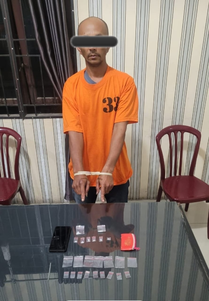 Dari penggeledahan tersebut, polisi menemukan enam paket plastik klip berisi narkotika jenis sabu-sabu dengan berat bruto 2,22 gram, 16 buah plastik klip kosong, satu buah pipet plastik, satu dompet kecil berwarna merah, dan satu Handphone.