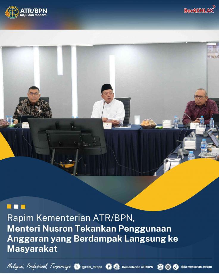 Seperti diketahui, di awal kepemimpinannya, Menteri Nusron menaruh perhatian pada pengembangan sumber daya manusia dan peningkatan pelayanan di Kementerian ATR/BPN. Sehingga, ia ingin anggaran program yang ada di masing-masing unit kerja pusat, bisa menunjang kedua program tersebut.”Anggaran yang ada benar-benar dimanfaatkan untuk mengoptimalkan peningkatan sistem layanan dan sumber daya manusia kita” tegas Menteri ATR/Kepala BPN.