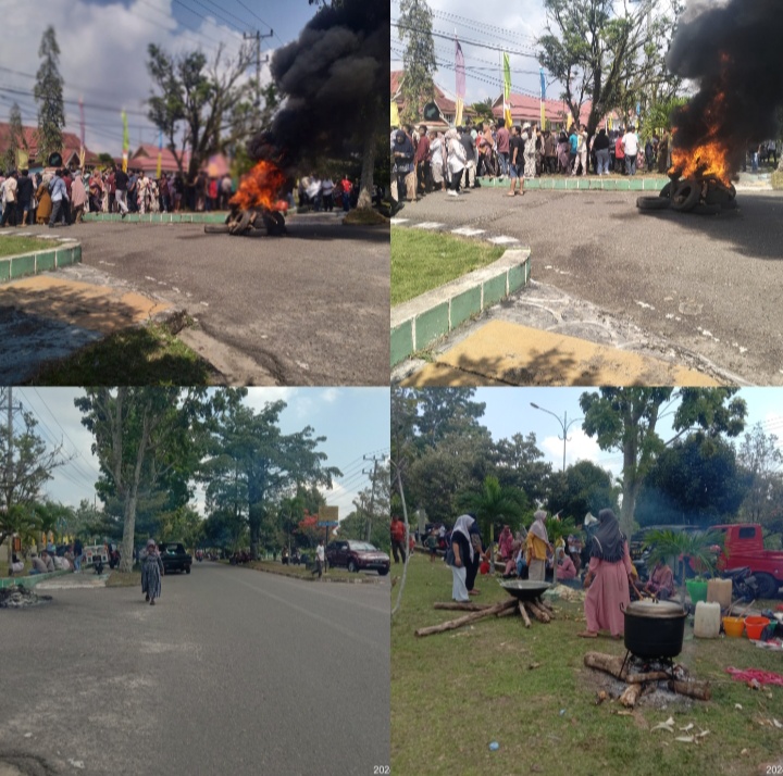 Ratusan Masyarakat Dusun Pedukun Kecamatan Tanah Tumbuh Kabupaten Bungo Kembali Melaku kan Aksi Unjuk Rasa Di Depan Kantor Bupati Bungo