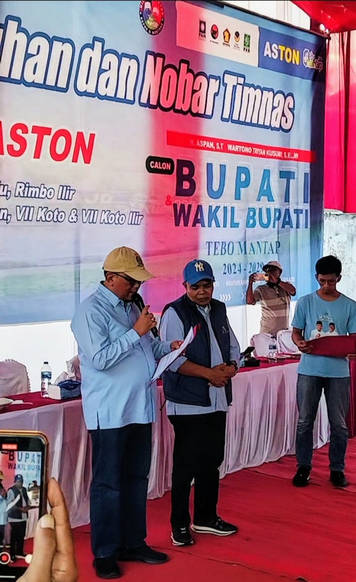 Wartono calon wakil bupati ,Dalam sambutanya mengatakan, bahwa Tebo Mantap ,apabila Aston menang langsung kerja tidak memerlukan 100 hari kerja.