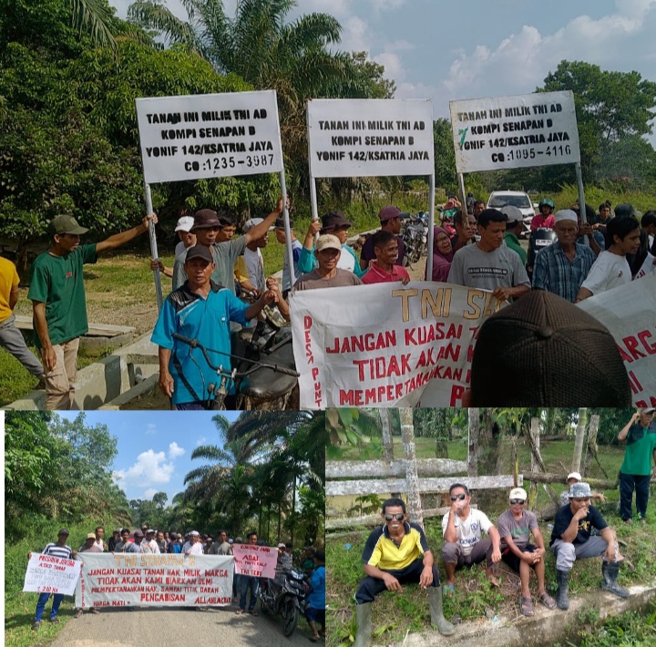 Ratusan warga Desa Puntikalo, Kecamatan Sumay, Kabupaten Tebo, melakukan aksi spontan Jumat 17 /05/2024 Masyarakat protes terkait pemasangan patok oleh TNI di lahan milik warga Sabtu yang lalu.