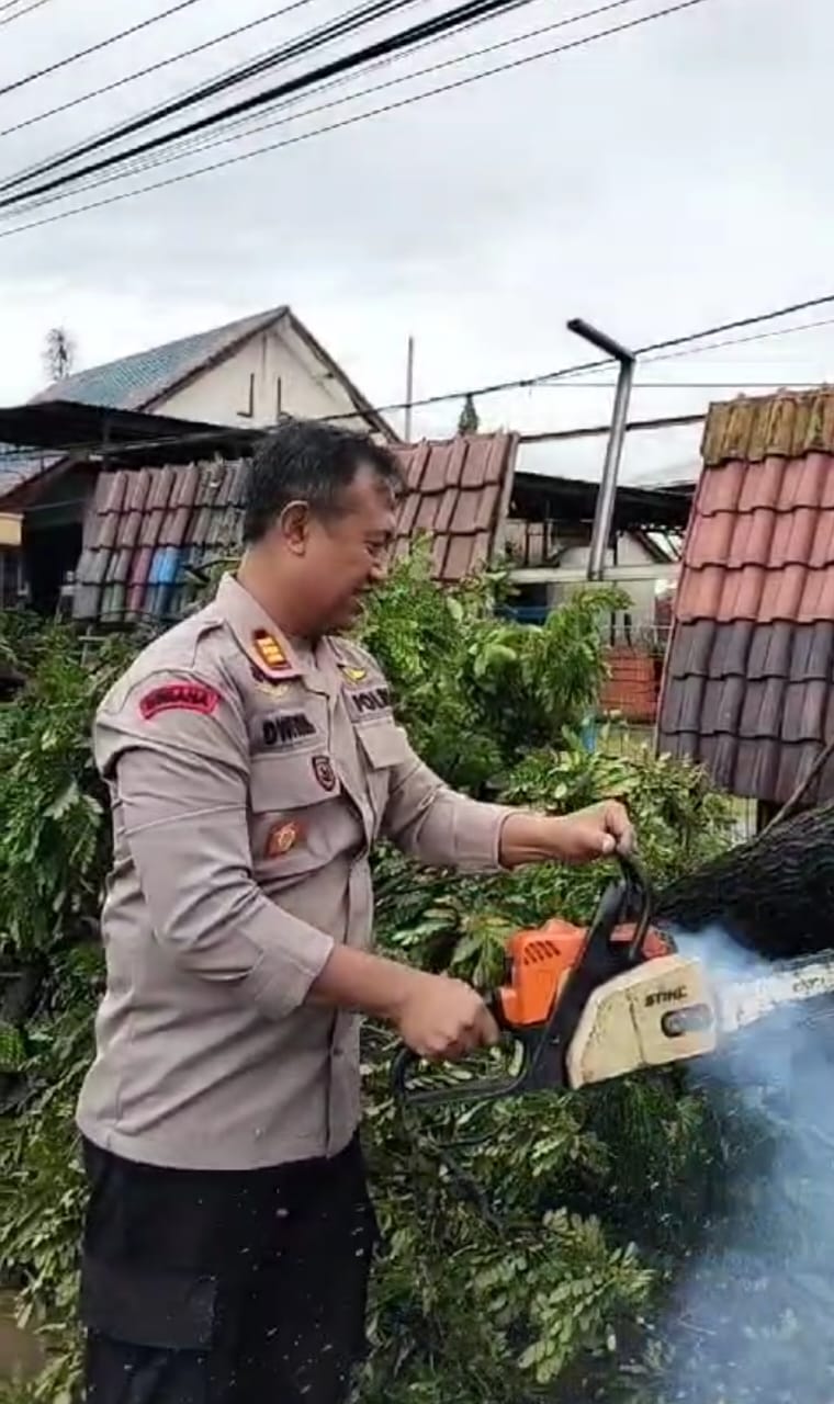 Respon Cepat Cegah Kemacetan, Polsek Margorejo Evakuasi Pohon Tumbang Melintang di Jalan Pantura