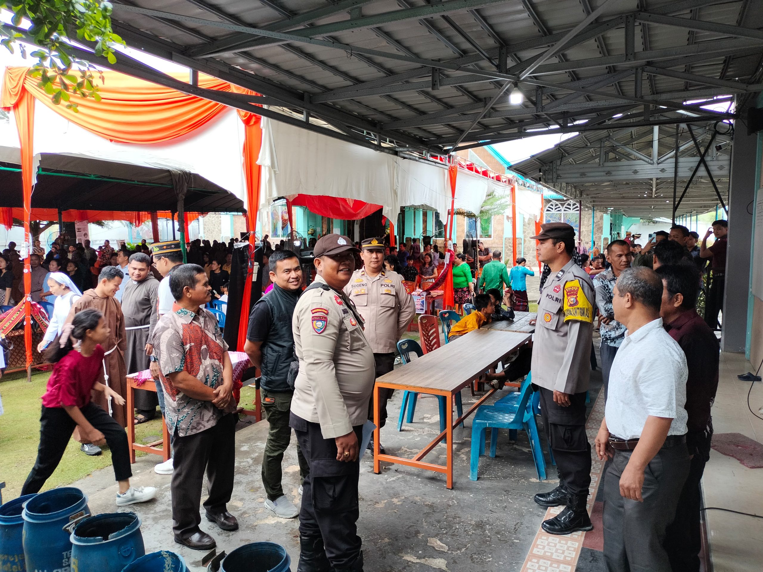 Petugas kepolisian melakukan pengamanan secara terbuka dan tertutup untuk memastikan situasi tetap kondusif selama kegiatan berlangsung. “Kami hadir untuk memberikan rasa aman kepada masyarakat, khususnya jemaat yang tengah menjalankan ibadahnya,” ujar IPDA Sugeng Mishari di sela-sela kegiatan.