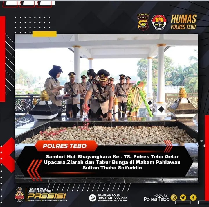 Tidak hanya itu saja, Polres Tebo saat di kompirmasi media kompas 86 melalui pesan singkat what shapp acara tabur bunga ini sebagai bentuk kecintaan kepada pahlawan kita sultan thaha saifudin Tebo ,dan ikut bahagia pada Peringatan Hari Bhayangkara ke -78.