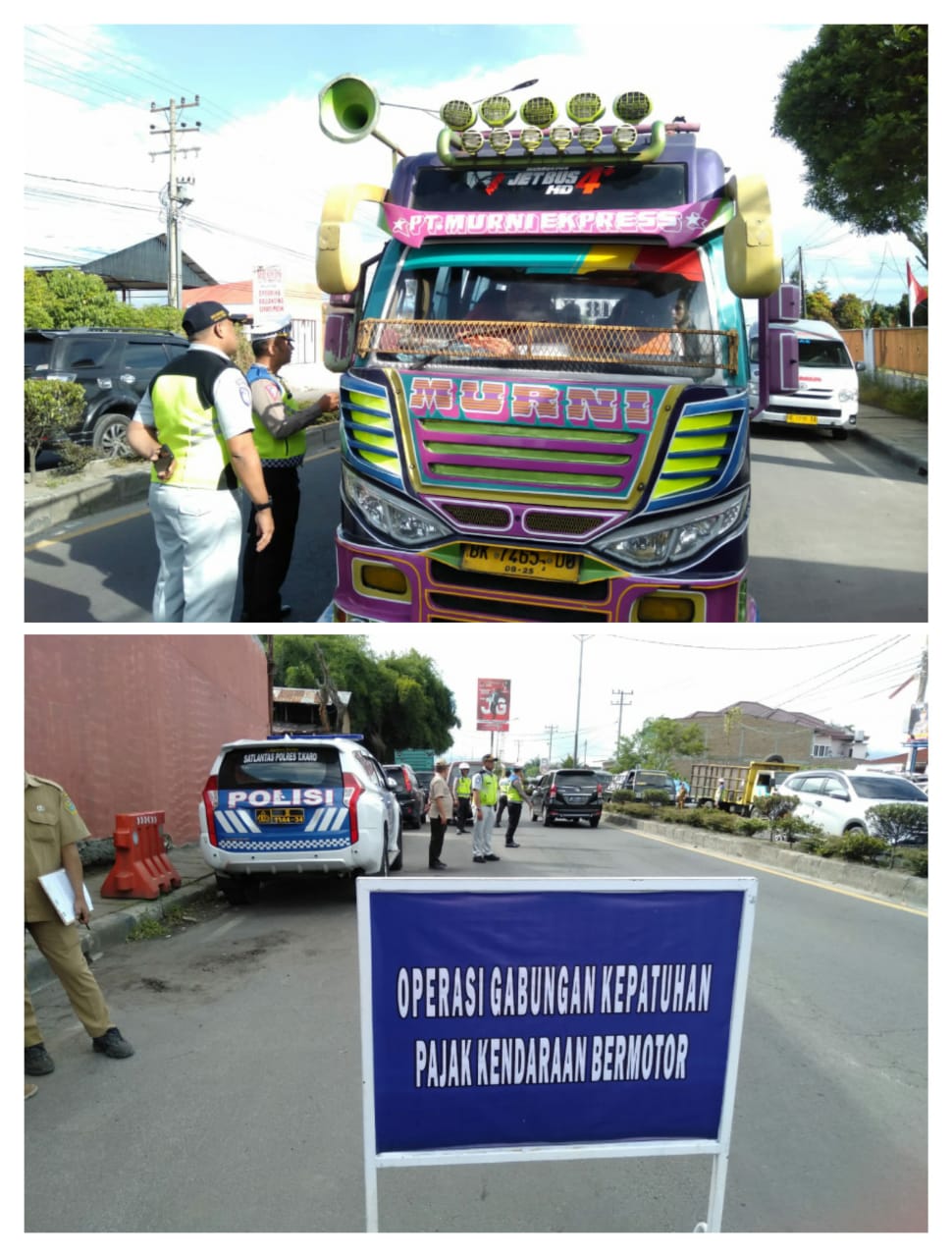 Dalam razia ini, petugas gabungan melakukan pemeriksaan pajak terhadap para pengendara yang melintas, baik kendaraan roda 2 dan roda 4.