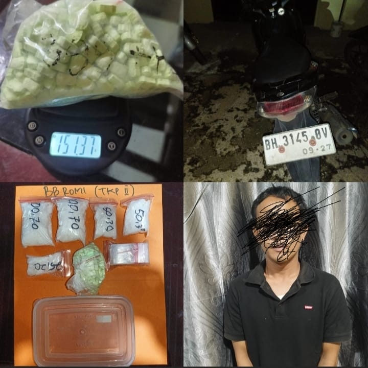 Terduga pelaku berinisial RH (35) warga Purwodadi,Kelurahan Tebing Tinggi Kecamatan Tebo Tengah Kabupaten Tebo, Provinsi Jambi, di tangkap oleh Satresnarkoba Polres di sebuah rumah di Dusun Sepunggur Kecamatan Bathin II Babeko Kabupaten Bungo, Provinsi Jambi.