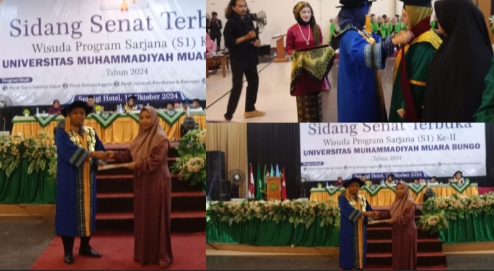 Universitas Muhammadiyah Muara Bungo (UMMUBA) menggelar sidang senat terbuka dalam rangka wisuda program Sarjana (S1) angkatanke- ll tahun 2024 di ballroom Hotel Semagi Muara Bungo pada Sabtu (19/10/2024)..