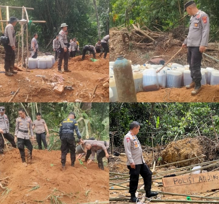 Dalam giat razia PETI di lokasi pertama ditemukan BBM solar sebanyak 64 galon atau jerigen, peralatan dompeng antara lain karpet. Keset, Asbok dan yang lainya, untuk alat berat sudah disembunyikan pelaku, selanjutanya BBM dimusnahkan dengan cara dibuang dan galon dirusak.