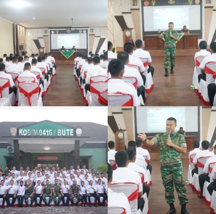 Komandan Kodim 0416/Bungo Tebo, Letkol Inf Dedy Pungky Irawanto, S.I.P., M.I.Pol., memberikan pembekalan dan pengarahan kepada peserta Sarjana Penggerak Pembangunan Indonesia (SPPI) bertempat di Aula Sudirman Makodim 0416/Bute, Jumat (25/07/2025).