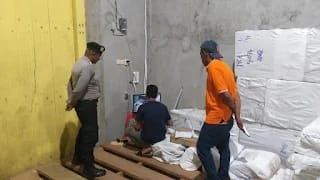 Satuan Tugas (Satgas) Preventif melalui Subsatgas Pam Kantor Penyelenggara Operasi Mantap Brata (OMB) Salawaku 2023-2024 terus tingkatkan pengamanan di Gudang Logistik Pemilu, Senin (09/01/24).