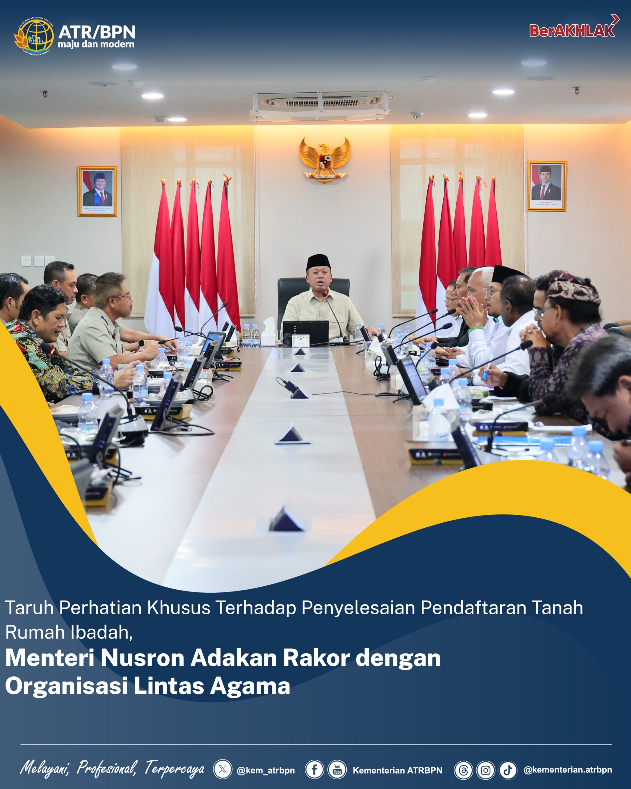 Jakarta – Menteri Agraria dan Tata Ruang/Kepala Badan Pertanahan Nasional (ATR/BPN), Nusron Wahid melakukan Rapat Koordinasi (Rakor) dengan sejumlah perwakilan dari organisasi lintas agama untuk percepatan pendaftaran tanah rumah ibadah di Indonesia pada Senin (13/01/2025). Hal ini menunjukkan bahwa selain pendaftaran tanah wakaf, Menteri Nusron juga menaruh perhatian khusus terhadap penyelesaian pendaftaran tanah rumah ibadah di tahun 2025.