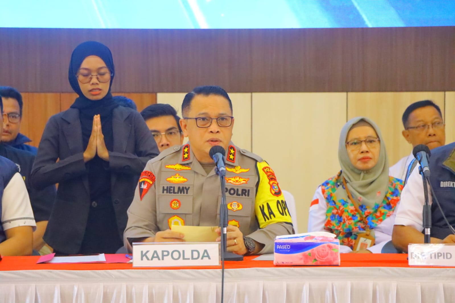 Bertempat di Gedung Seba Guna (GSG) Presisi Polda Lampung, Kapolda Lampung Irjen Pol Helmy Santika melaksanakan Confrence Pers. Rabu 31/1/2024.