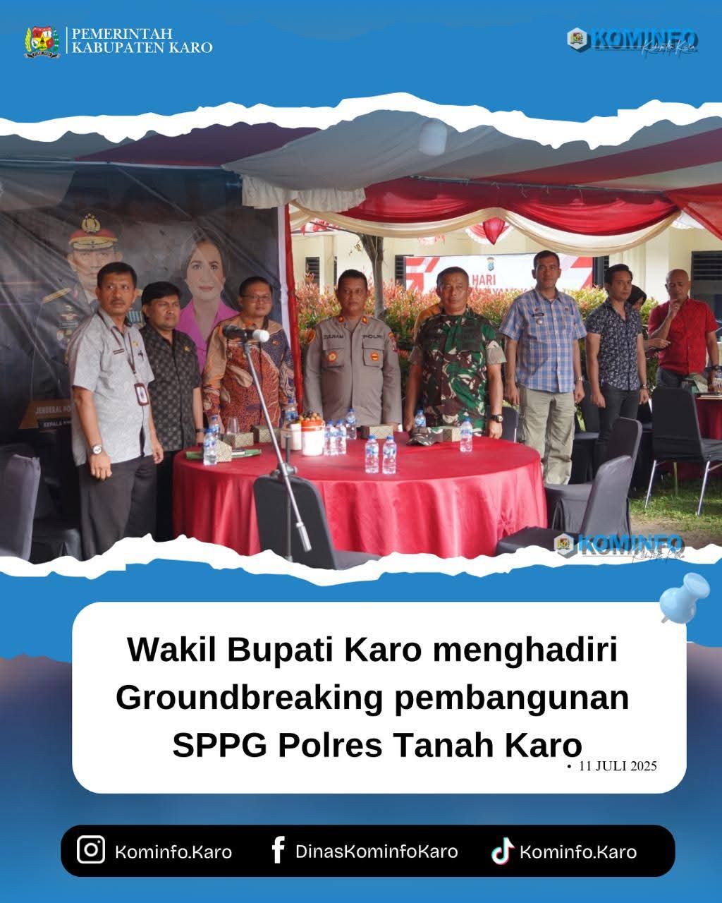 KARO (SUMUT) KOMPAS86.com__, Pemerintah Kabupaten Karo mengikuti kegiatan Zoom Meeting Groundbreaking Pembangunan Sentra Pendukung Program Gizi (SPPG) yang dilaksanakan secara serentak oleh jajaran Kepolisian Daerah (Polda) Sumatera Utara. Kegiatan ini dipusatkan secara virtual dari Mapolda Sumut, dan diikuti oleh seluruh Polres se-Sumatera Utara, termasuk Polres Tanah Karo, yang melaksanakan kegiatan di Mapolsek Berastagi, Jumat (11/7) pukul 16.00 WIB.