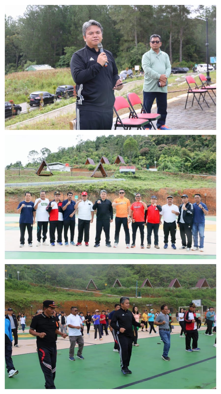 Wakil Bupati Tapanuli Utara, Dr. Deni Parlindungan Lumbantoruan, M.Eng, didampingi para Asisten, Pimpinan OPD, dan Aparatur Sipil Negara (ASN), melaksanakan kegiatan senam pagi bersama dan gotong royong di kawasan wisata rohani Salib Kasih, Tarutung, Jumat pagi (11/04/2025).