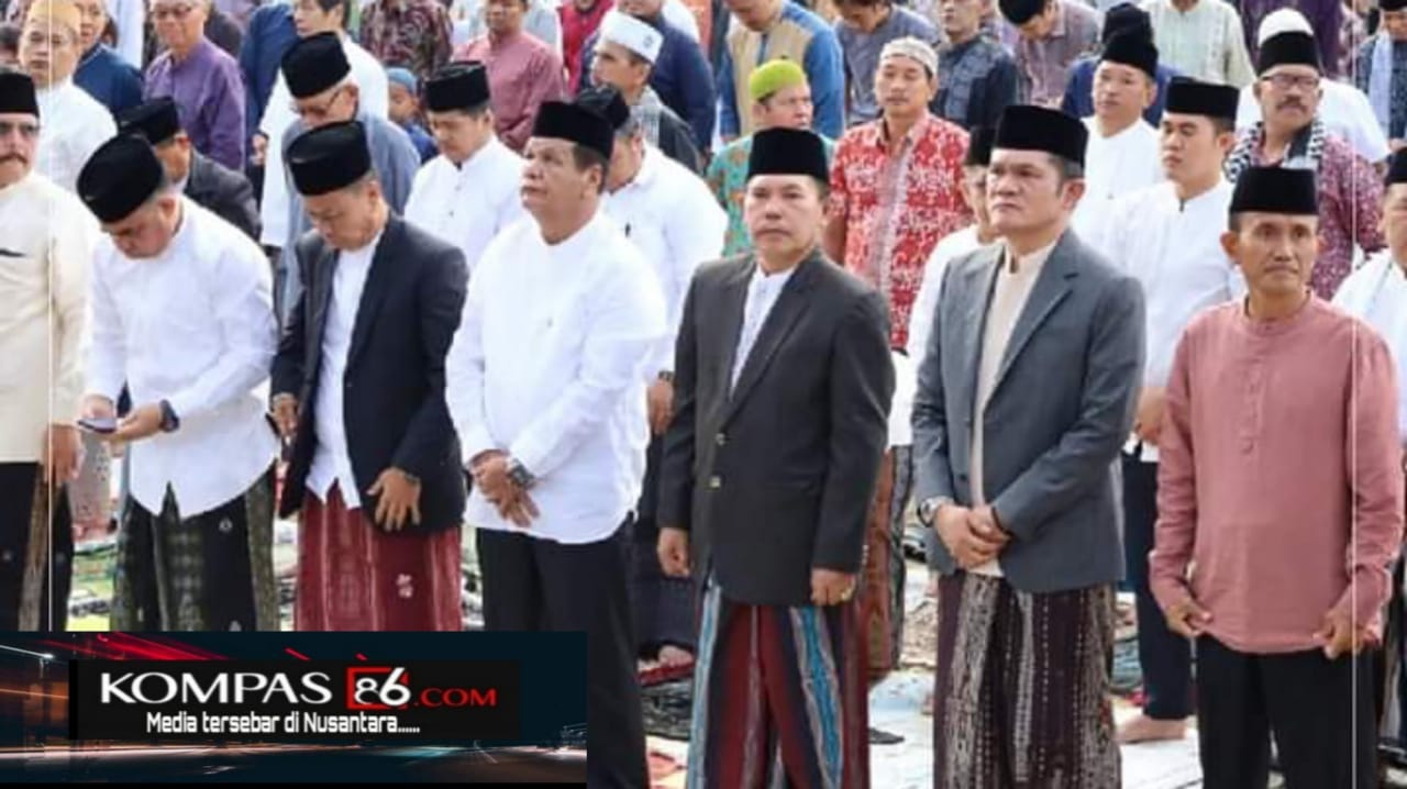 Wali Kota Sungai Penuh Ahmadi Zubir bersama Wakil Wali Kota Alvia Santoni melaksanakan Sholat Idul Adha 1445 H/2024 M bersama masyarakat Kota Sungai Penuh di Lapangan Merdeka, Senin (17/6)