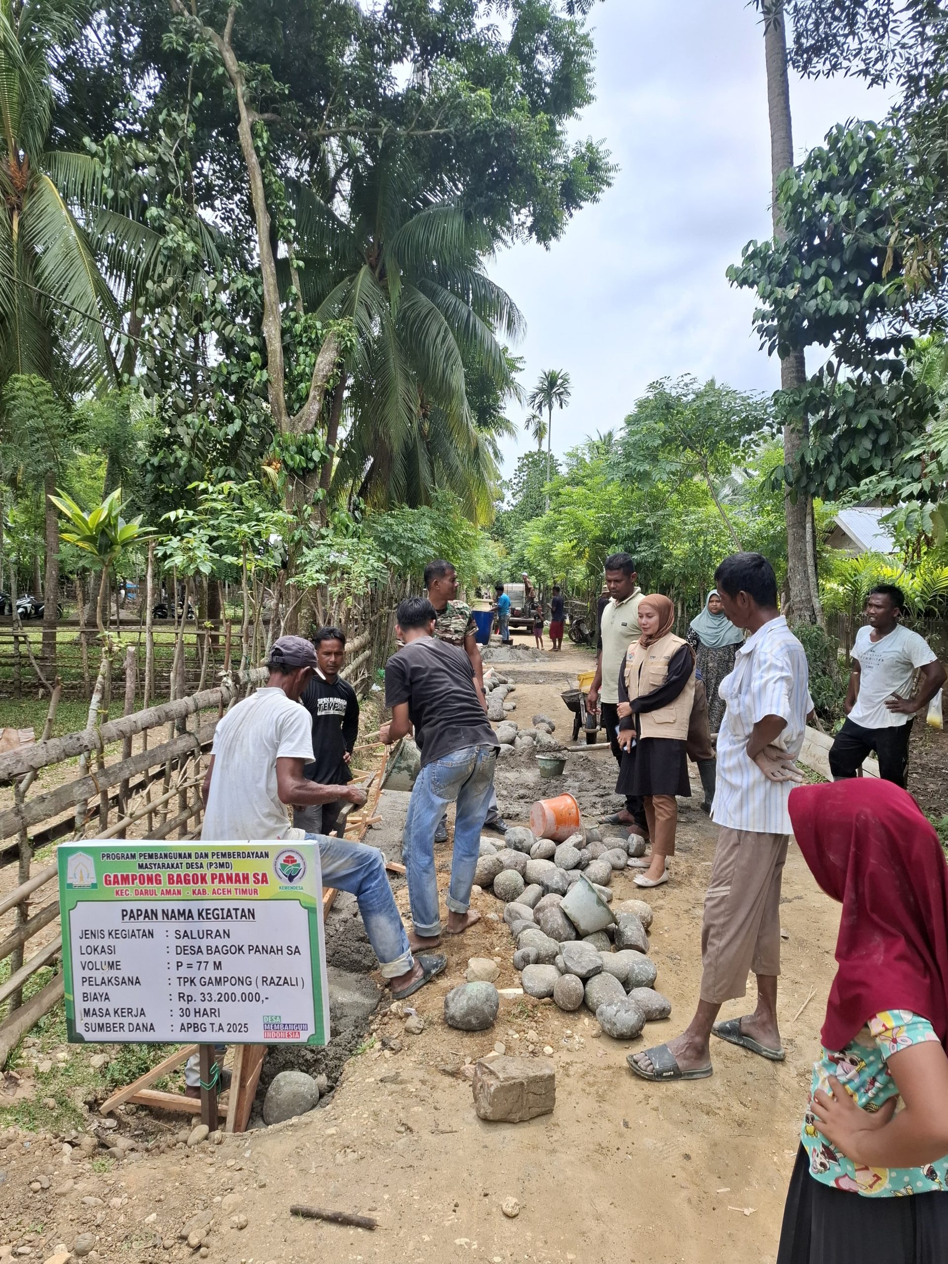 Hasan Basri (sekdes bagok panah sa)Selama ini, masyarakat Dusun Teungku Chik mengalami kesulitan dengan tidak adanya saluran yang memadai, sehingga pada musim penghujan, air sering terbenam di badan jalan dan membuat jalan menjadi becek dan rusak. Dengan adanya kegiatan pembangunan talud ini, masyarakat berharap dapat memiliki saluran yang memadai dan dapat mengurangi risiko kerusakan jalan.