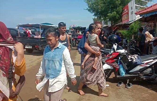 KARAWANG, KOMPAS86.COM | Hari ini, pasca Hari Raya Idul Fitri, Pantai Samudera Baru di pesisir utara Muara Desa Sungai Buntu, Kecamatan Pedes, Kabupaten Karawang, Jawa Barat, dipadati pengunjung dari dalam dan luar wilayah.